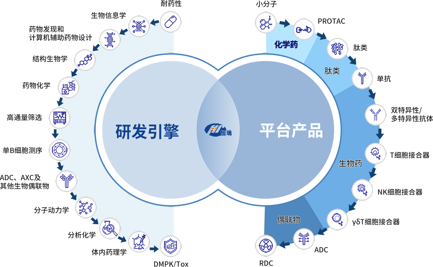 公司建立了一批国际领先的新技术平台,如PROTAC、肽类、单克隆抗体、双特异性抗体、多特异性抗体、ADC及放射性配体疗法等,为创新研发提供强大基础保障。
